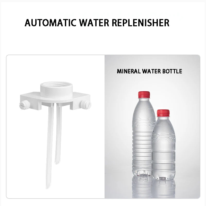 Water replenisher: A configuration adapter with a caliber of 28MM (can be connected to carbonated plastic bottles such as Coca Cola/Pepsi Cola/Sprite)