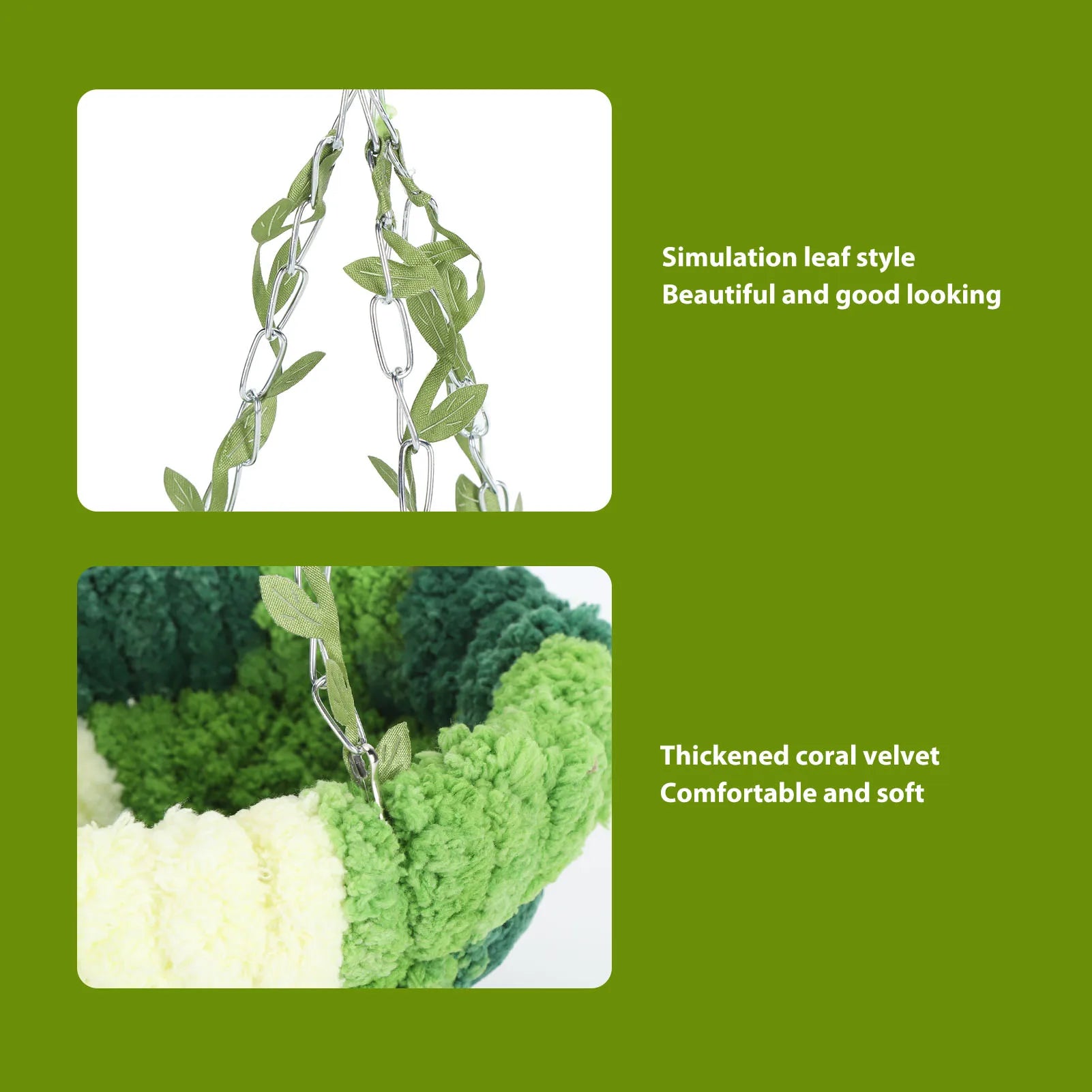 1. Forest Inspired With a leaf style design, this marvelous hammock mimics the forest, enhancing your pet's habitat and offering a natural feeling.2. Soft and Comfortable: Crafted from thick coral velvet, the hammock provides a plush and safe resting place for your pet.