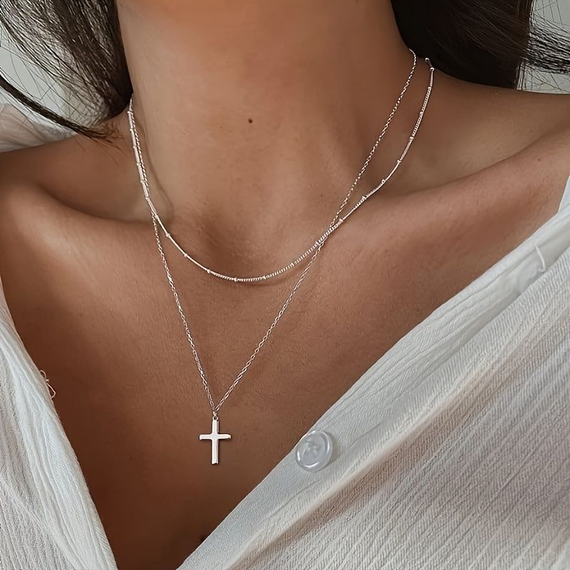 Chic Multi-Layered Cross Necklace - Elegant Handmade Jewelry for Women, Stunning Gift for Any Occasion