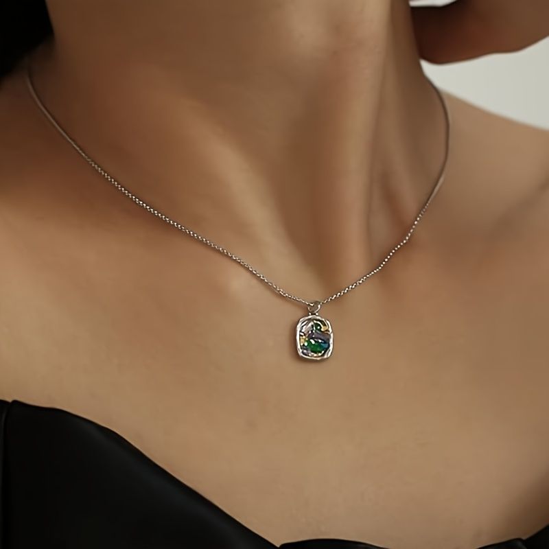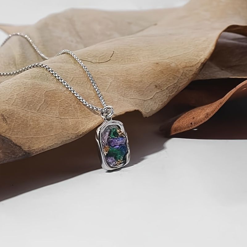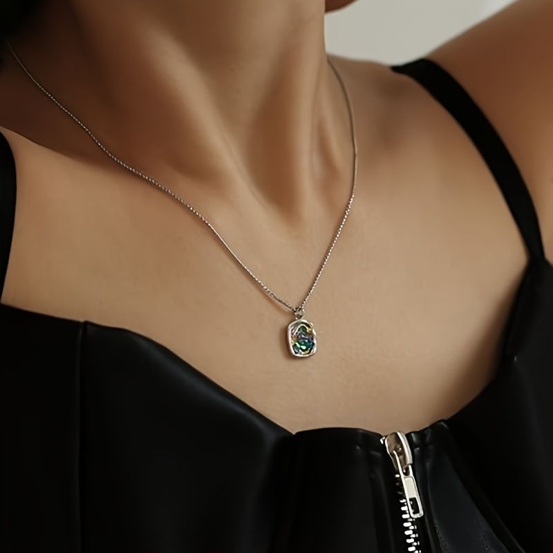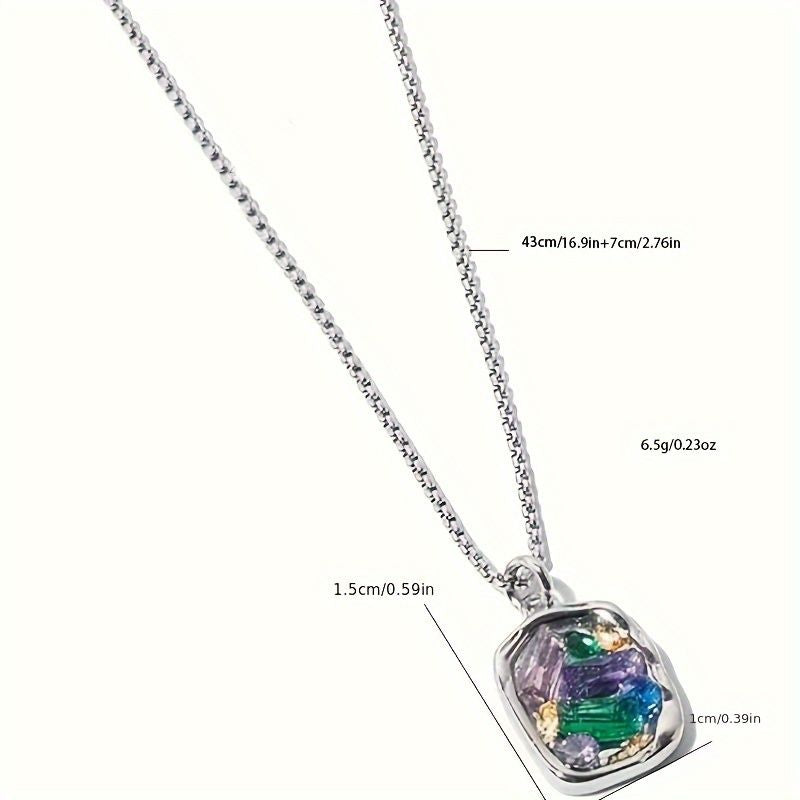 Elegant Electroplated Silver Clavicle Necklace with Multicolored Gemstone Pendant - Perfect Gift for Celebrations