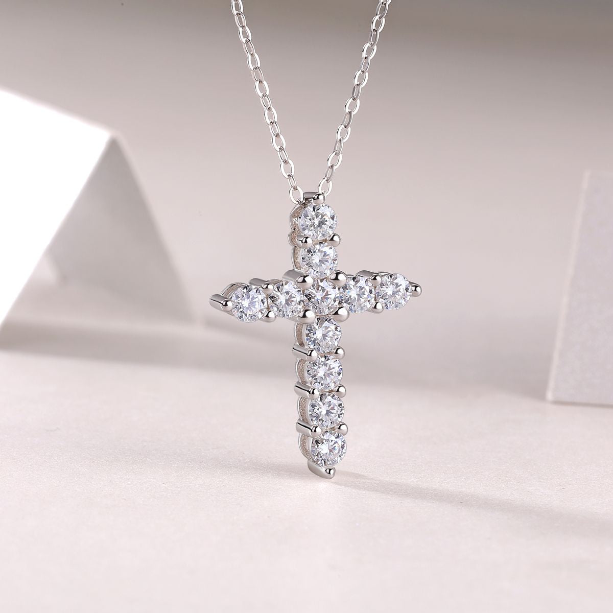 2. Row setting diamonds provide eternal protection The brilliant diamonds are fully set with cross lines, shining with unextinguishable faith and reflecting the light of protection