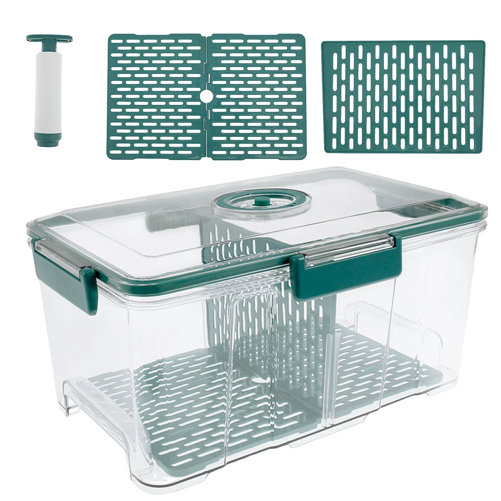Removable Baffle: There is a detachable baffle in the box. It can be a partition to compartmentalized different food for better sorting or organizing. Drain hole design helps remove extra water when washing fruit or vegetable.
