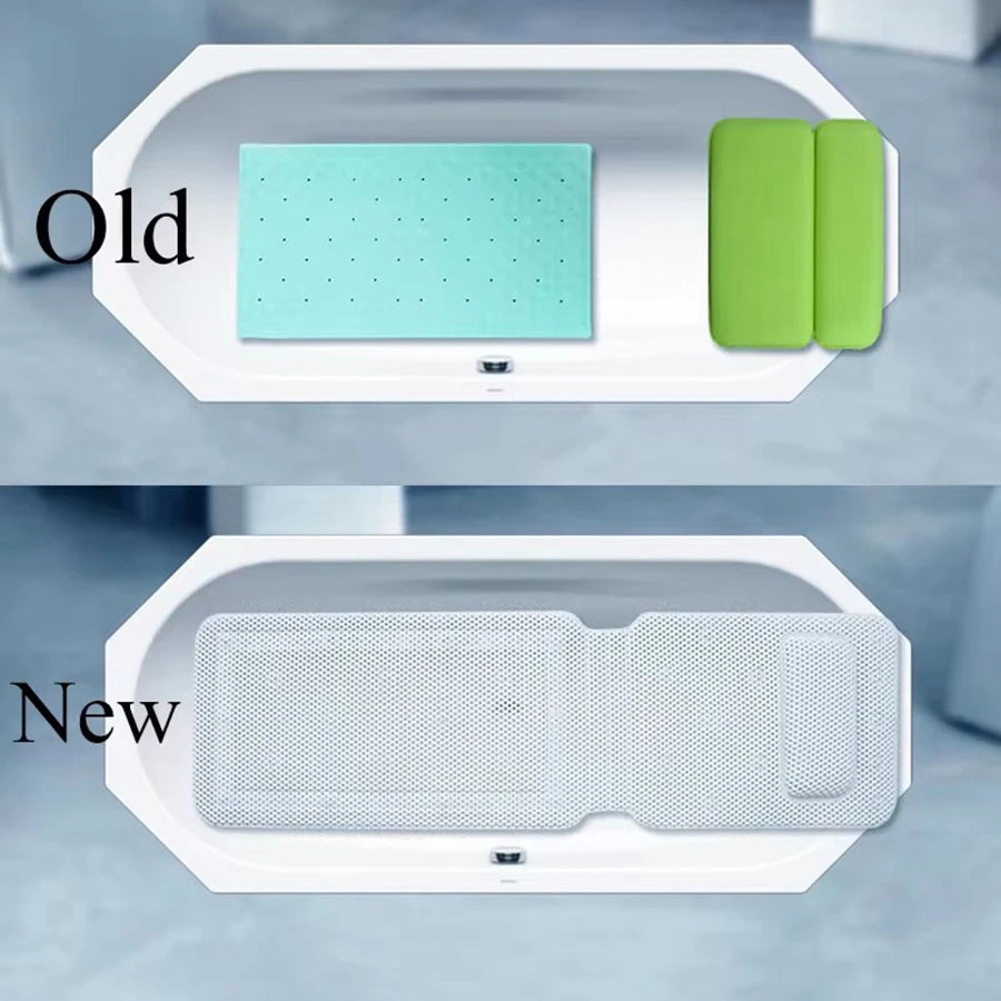 Non Slip BathTub Mat Suction Cup Bath Tub Pillow Headrest Long SPA Pillows Neck Cushion Hangable Waterproof Bathroom Accessories