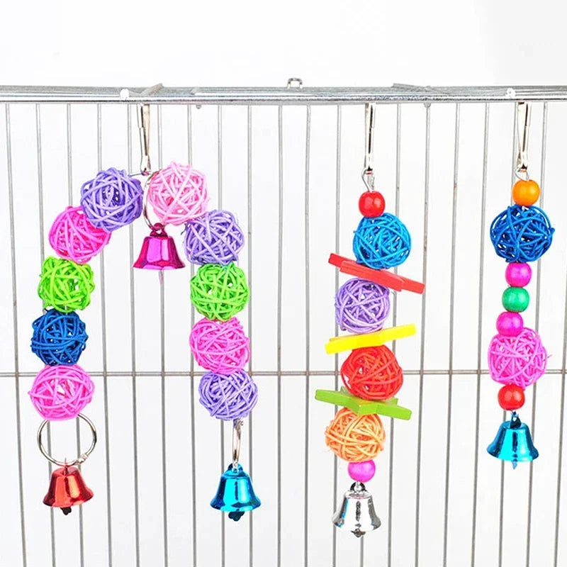 Parrot Chew Strands Wooden Bird Parakeet Bite Molar Toys Rattan Ball