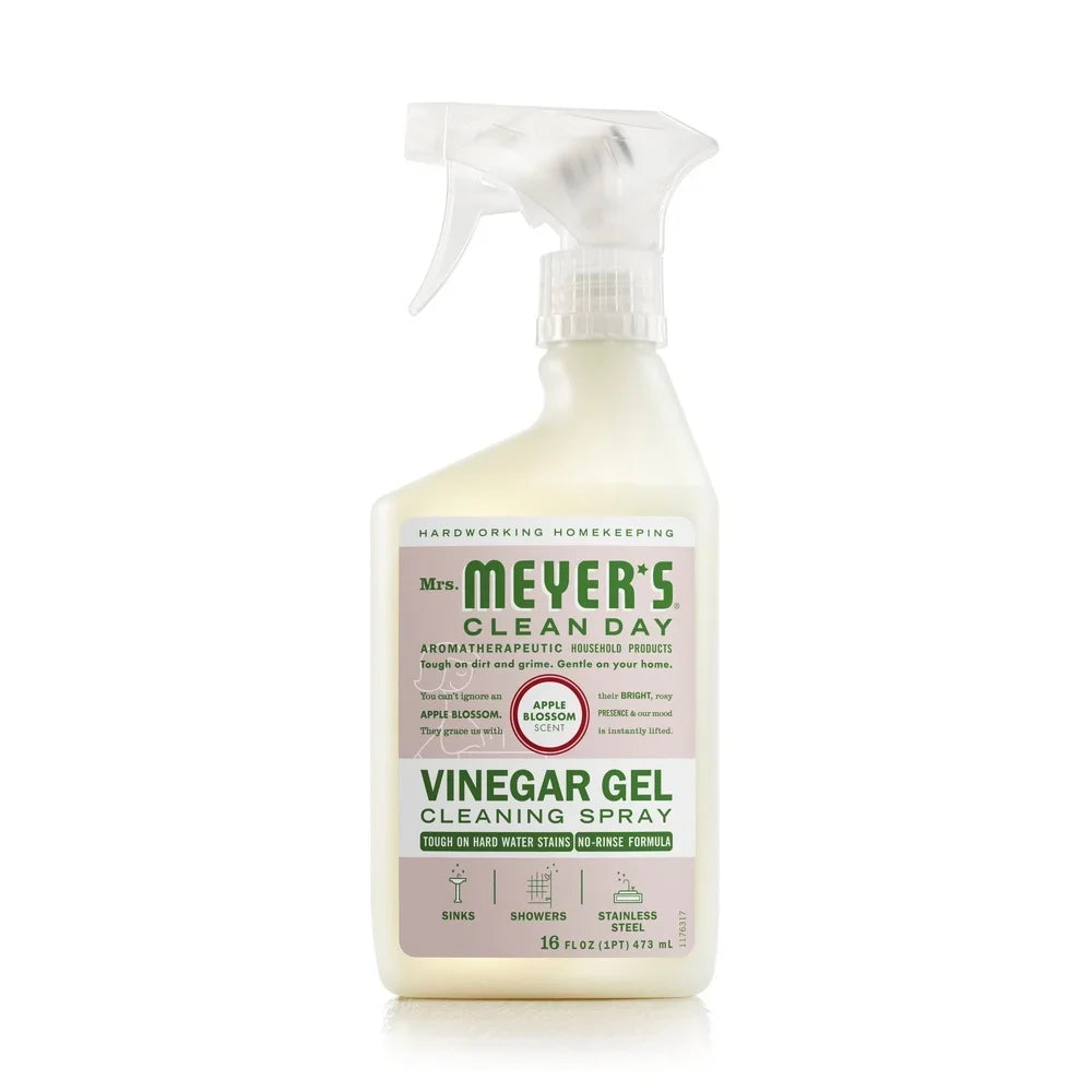 Mrs. Meyer's Clean Day Vinegar Gel Cleaning Spray features a plant-derived, thickened vinegar—with our bright Apple Blossom scent —that cleans without needing to rinse. For cleaning sinks, showers, stainless steel, and all those other little do-it-yourself vinegar jobs, only much more pleasant! Try it and we're sure you'll love it as much as we do!
